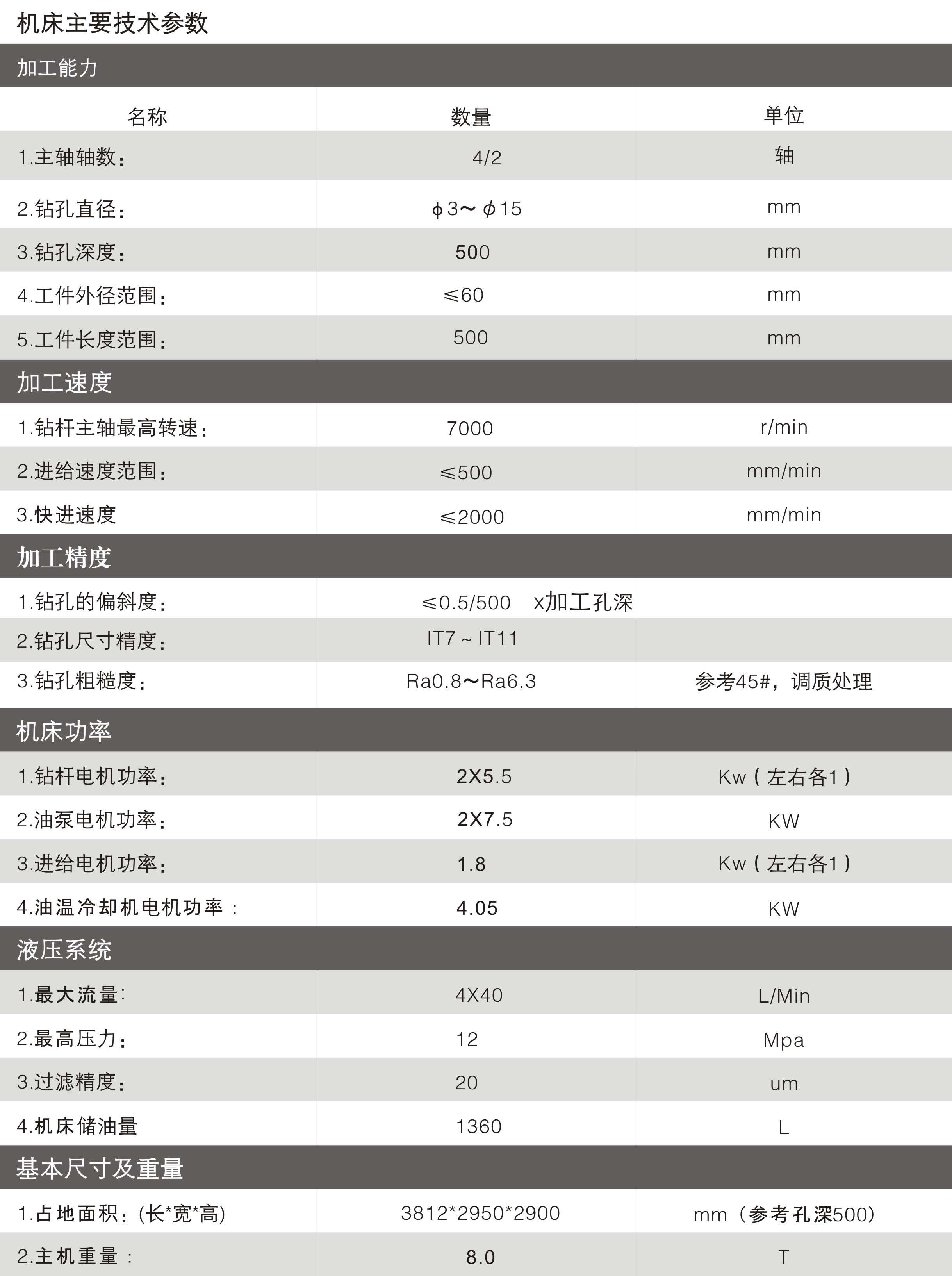 加工能力:加工孔徑范圍φ5-φ15mm 最大鉆深 500mm 鉆桿主軸:變頻調速 定位夾緊方式:利用工件外圓倒角或中心孔定位,液壓驅動,通過內錐頂盤夾緊工件 典型零件;齒輪軸、凸輪軸、活塞銷等軸類零件的同心孔加工" />