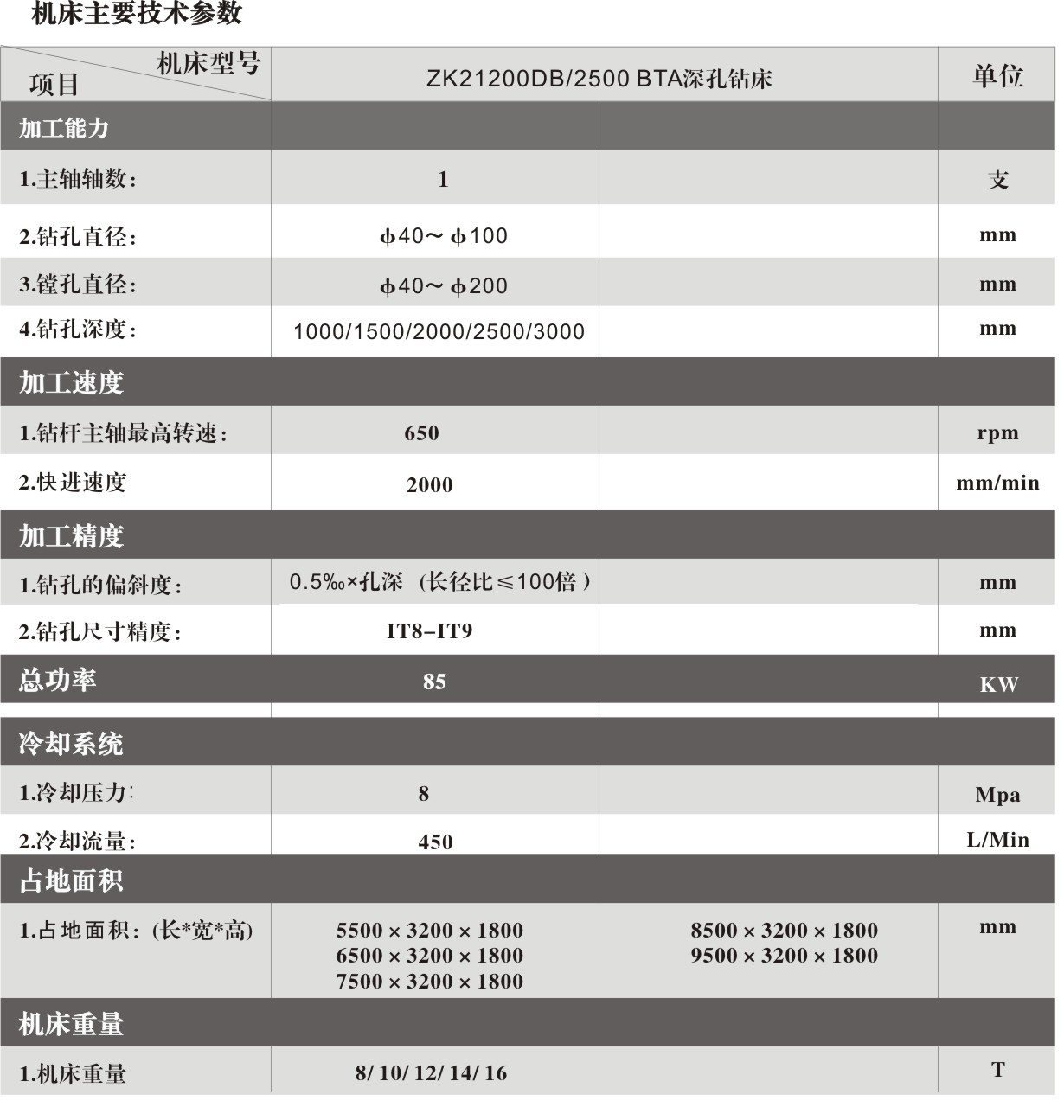 簡要說明:機床采用臥式布局設(shè)計,深孔鉆主機在前,冷卻系統(tǒng)在后,平行放置,結(jié)構(gòu)緊湊,占地面積小;該型BTA深孔鉆床用于軸類零件同軸心深孔的鉆削加工。刀具采用BTA單管鉆,內(nèi)排屑,加工效率高。非常適合多品種小批量高效深孔加工。