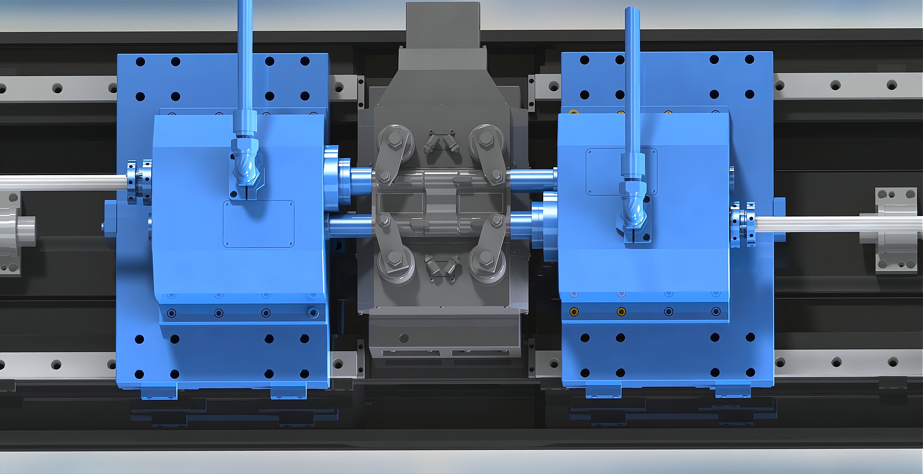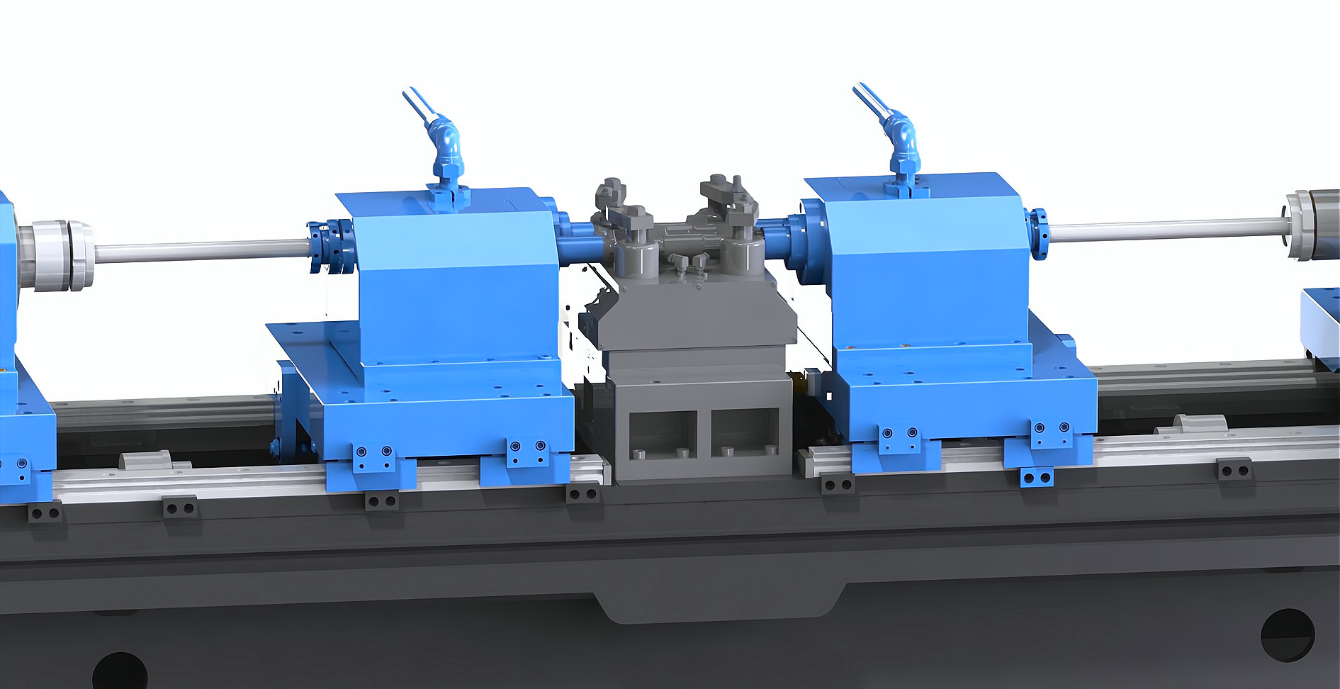 簡要說明:機床采用臥式布局,兩支鉆桿對向錯位設計,中心距94mm(可定制),刀具采用BTA單管鉆。工裝放置在機床的中間位置,液壓旋轉壓板自動夾緊。一次裝夾,可同時對向鉆削加工完成履帶板上的2-φ32mm深孔。加工效率極高。冷卻系統放置在主機后面,平行放置,結構緊湊,占地面積小;